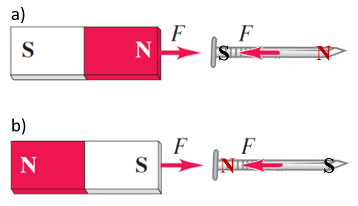 Figure 1, Alternation of a nail’s polarity when it approaches to different poles of a permanent magnet